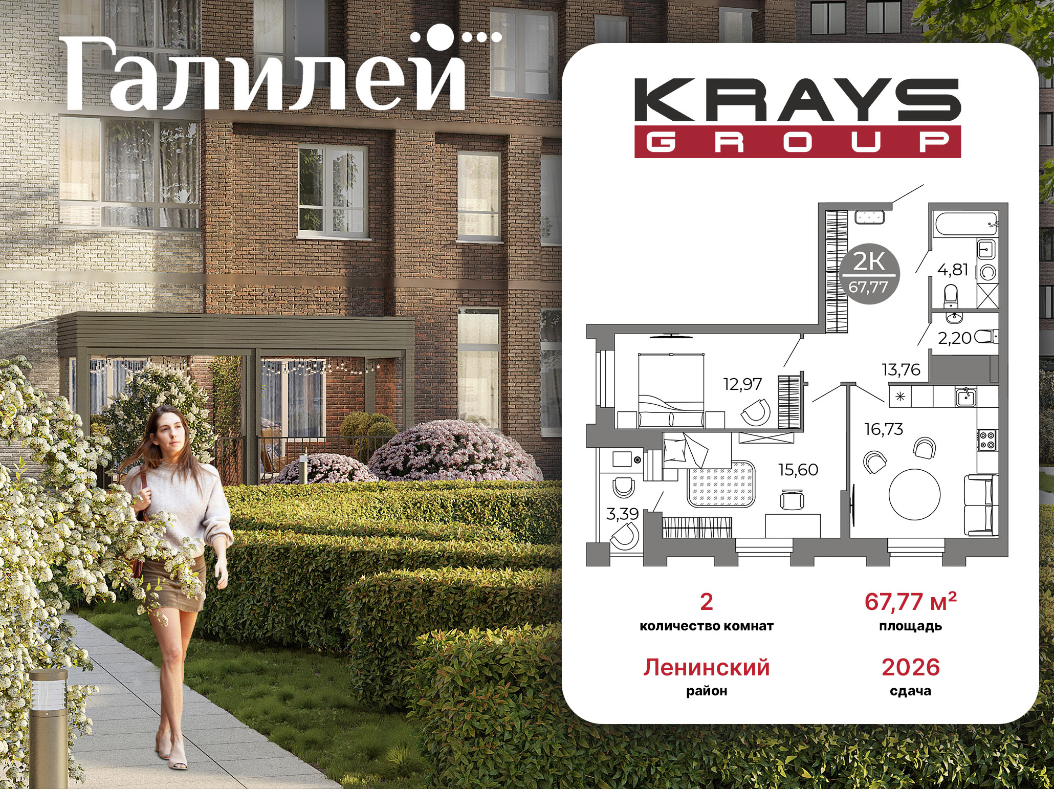 2-комнатная квартира, 67,77 м 2