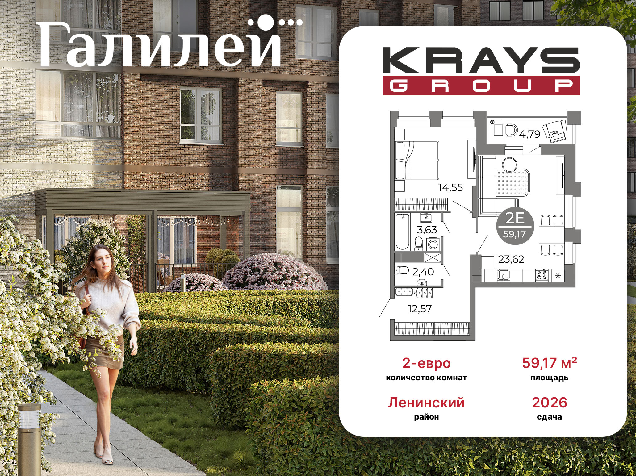 1-комнатная квартира, 59,17 м 2