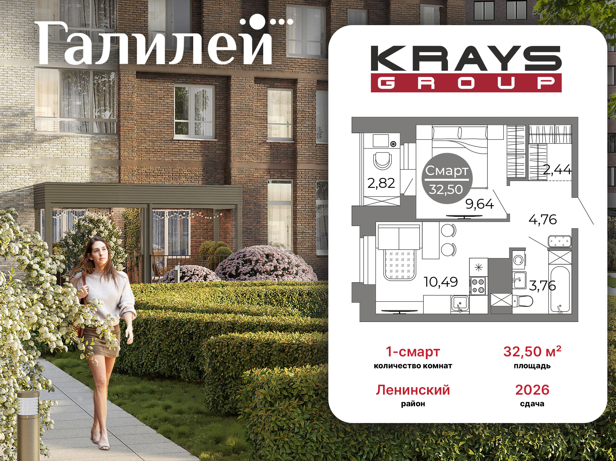 1-комнатная квартира, 33,76 м 2